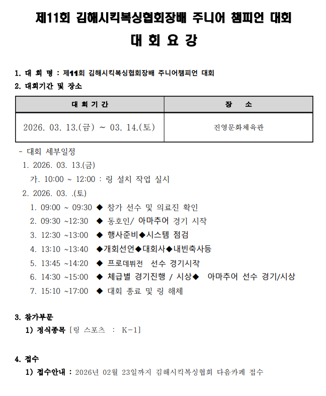 제11회 김해시 킥복싱 협회장배 및 주니어 챔피언 대회